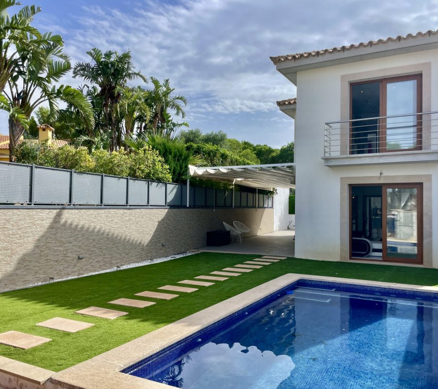 From the spacious bright living room you can go through the large sliding doors to the sunny terrace and pool.
